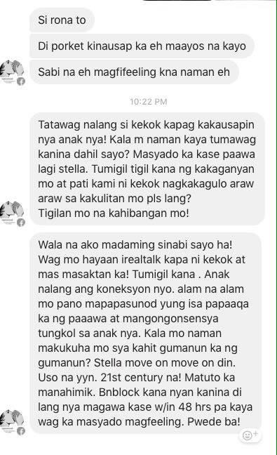 RONALYN, ako'y punung puno na sa kakapalan ng pag mumukha mo! magalit na kung sinong magagalit saken ngayong gabi dahil dito! tumahimik na ako sayo, pero akoy sinagad mo na talaga! nirespeto ko magulang mo, at magulang ni kekok. sana ako'y nirespeto mo din bilang isang asawa ng BF mo, at nirespeto mo ang anak namen bilang anak ng BF mo. Desperada move ba ang iinvite ang friends mo, yes, desperada akong mapahiya ka. matagal na.. o eto, mga friends, relatives, eto ang dahilan ng lahat.. sya ang napakaganda, napakasexy, napakabaet na si RONALYN GUEVARRA! KABIT! HOME WRECKER! kinababaliwan ni KEKOK! baliw na baliw sya sa babaeng yan! takot na takot pa sya jan! kahit hindi na bumalik si kekok sameng mag ina dahil dito, sayong sayo na sya! I'm done!Gulo ata kase ang ginusto mo. O eto bigay ko na sayo for real.. nalaman tuloy ng mga kamag anak ko. hindi na ako mahihiya. ikaw pa nagsend ng pic nyo talaga ha, o ayan ikaw den gumawa ng ikahihiya mo..