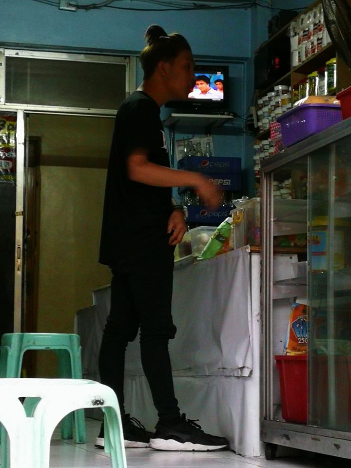 "This is me secretly filming him. I was holding my phone from a low angle so that he wouldnt notice what I was doing. Magagalit kasi sya if nalaman nyang vinivideohan sya."